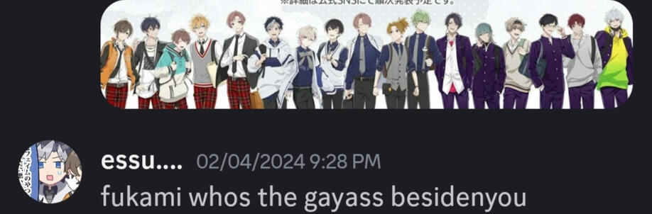 interest(s): aoppella, 18trip, paralive, fragaria memories, helios, nijisanji (mostly jp), umamusume, hoshikuzu showtime/unison, limbus company, hsr, enstars, milgram, idv, tokusatsu, r1999, mahoyaku, #compass, hypmic, twst, utaite, ookami game and more!
